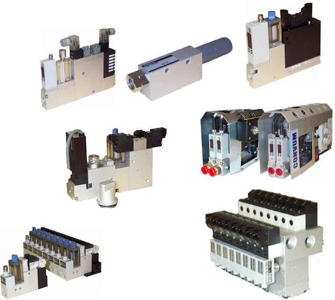 Serie GMS, GPN, GA, GP & GW. Generadores de vacío tipo venturi con solenoide integrado Ventosas Filtros para vacío.