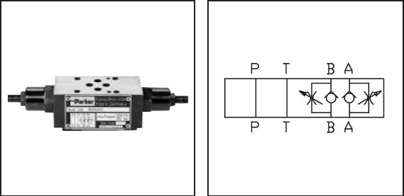 Las válvulas dobles Manapak de control de flujo serie FM permiten libre flujo desde la válvula direccional hacia el actuador y regulación independiente ajustable de flujo en cada línea de retorno desde el actuador (regulado-exterior). Las FM2 y FM3 tienen una placa sello y pueden invertirse para aplicaciones regulado interior (ver diagrama de instalación para dirección de